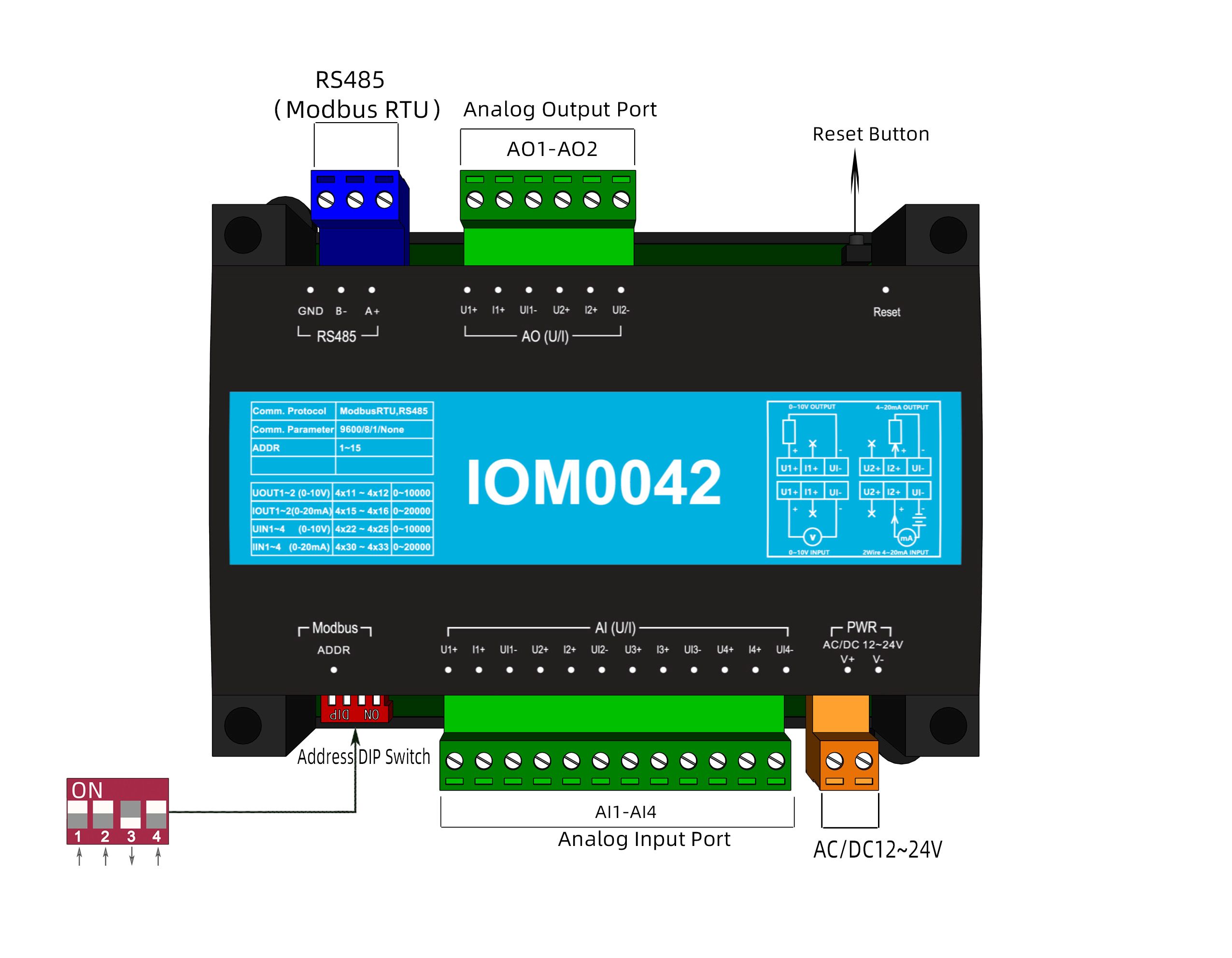 Analog Input  Supports 0-10V, 0-20mA (AD 14bit)