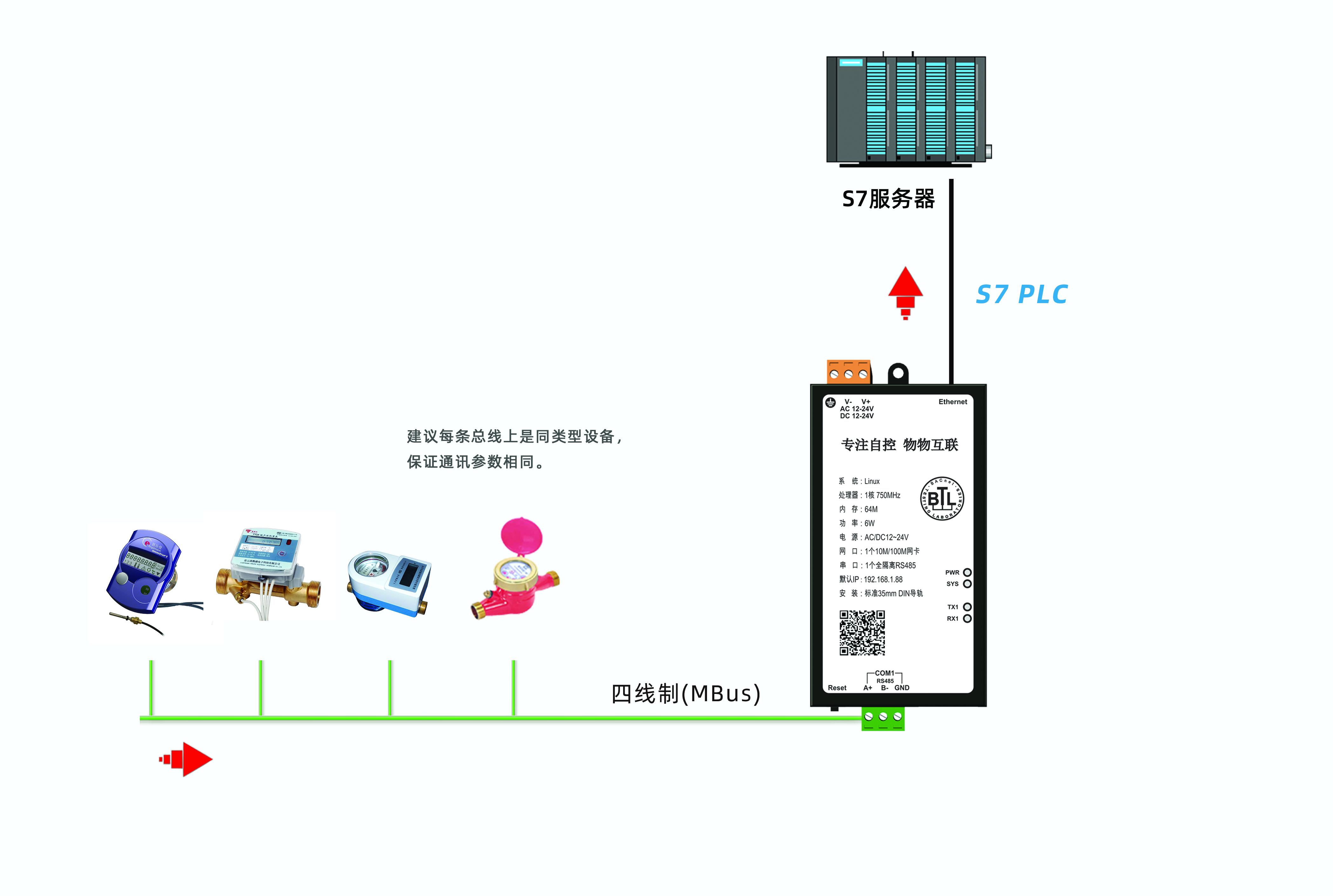 -支持采集MBus_WaterMeter、MBus_EnergyMeter、MBus_EnergyMeter_EN、ModbusRTUClient、ModbusTCPClient、DL/T645-1997/2007转发为西门子S7服务器;