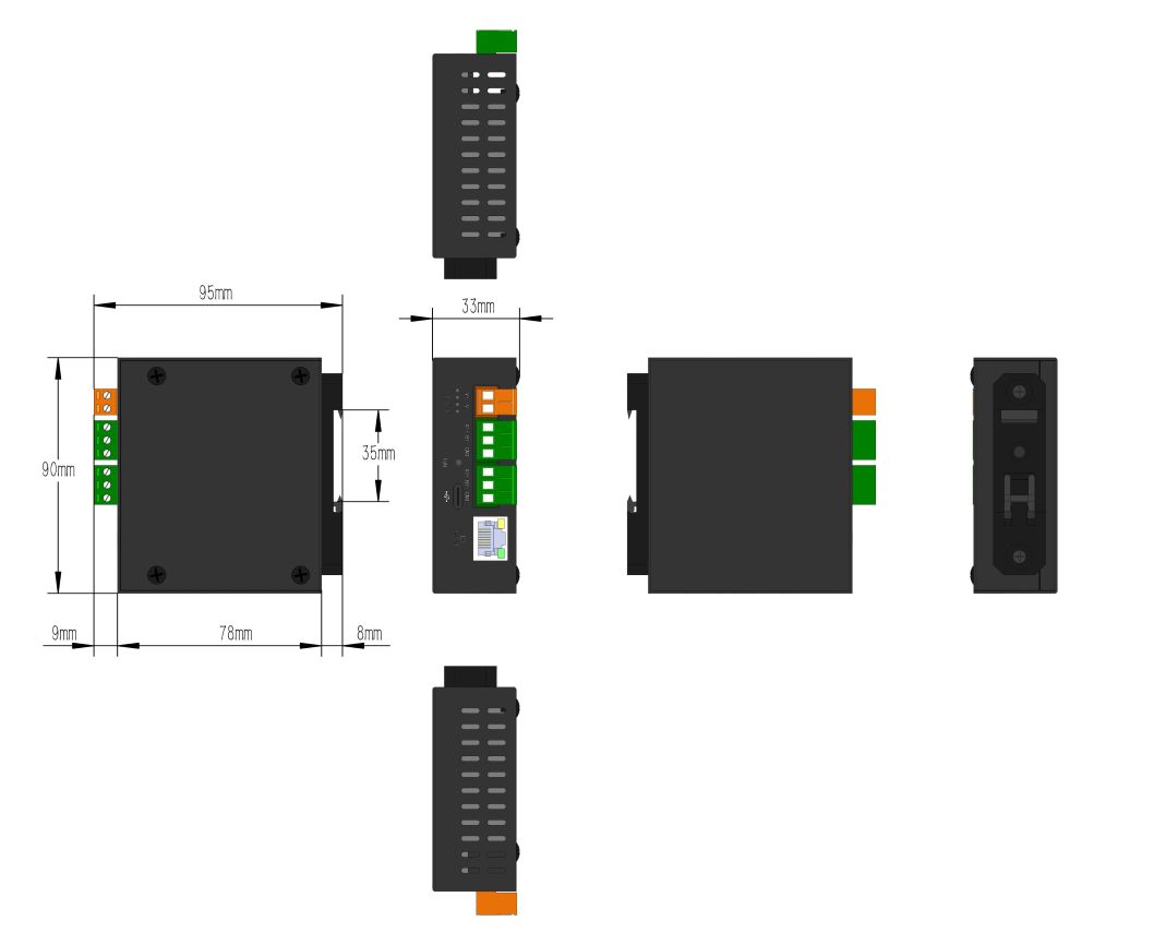 接口:1个网口,2个RS485 温度:-20~70℃(工作) -40~85℃(储运)