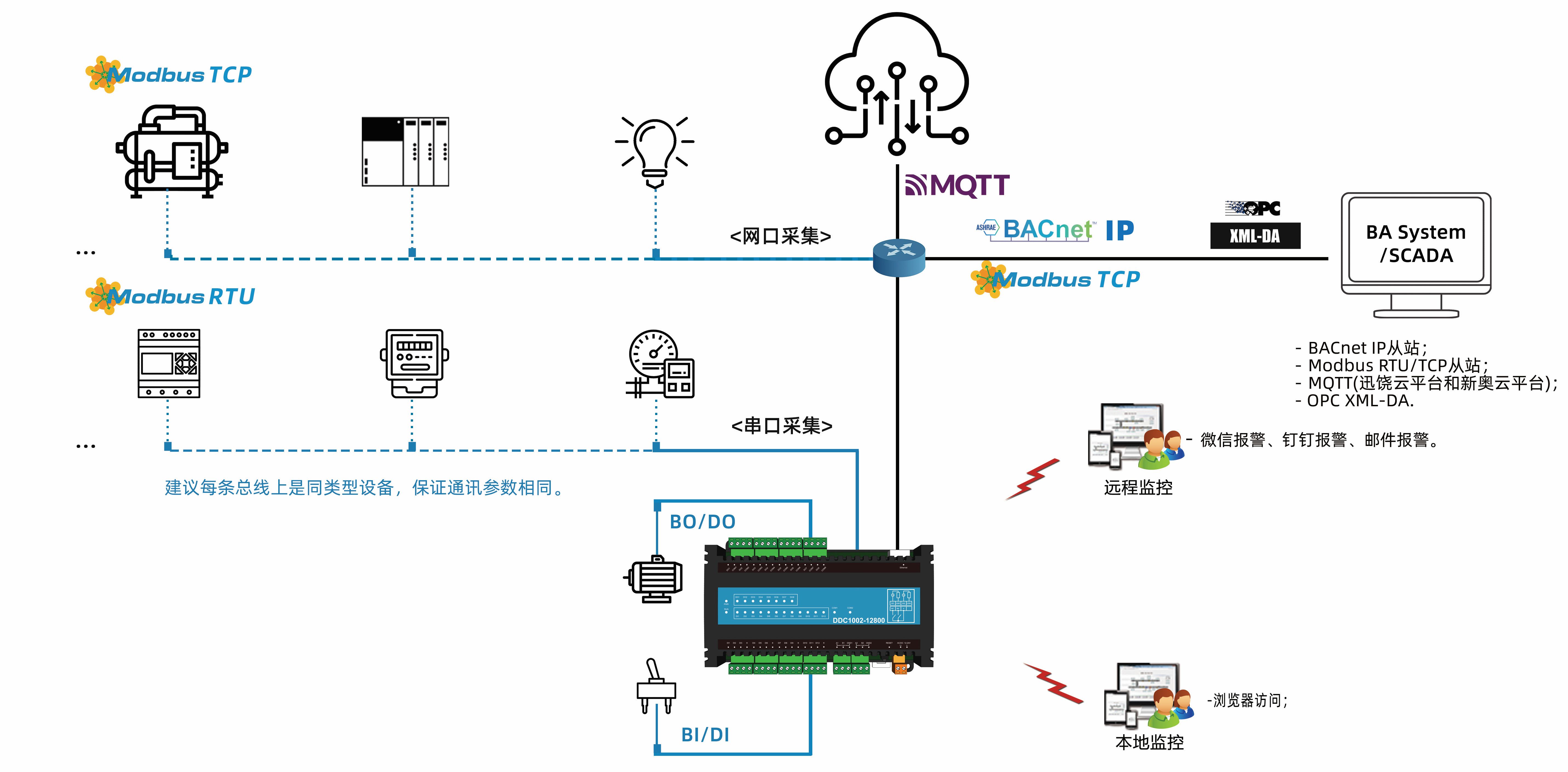 -DDC本身也是网关,支持采集Modbus、BACnet IP、Simulator,方便扩展;