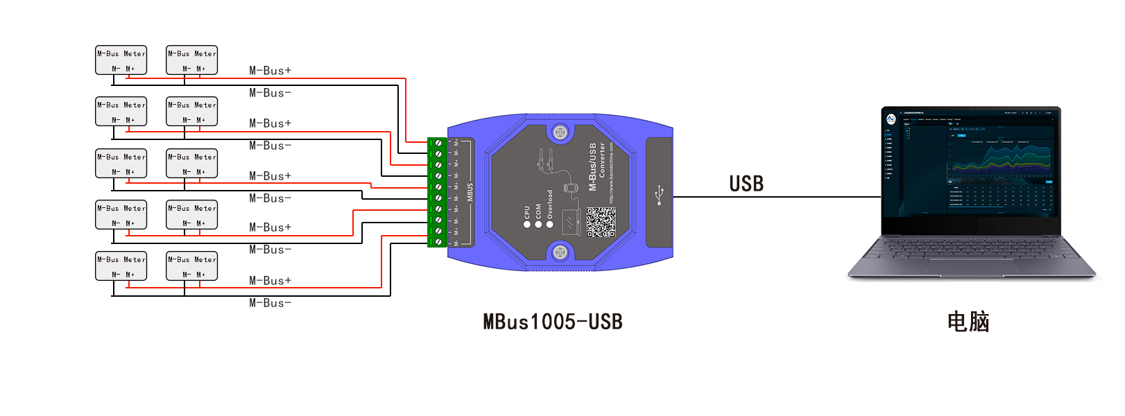 5组MBus总线MBus+, MBus-(建议总共不超过10台设备)